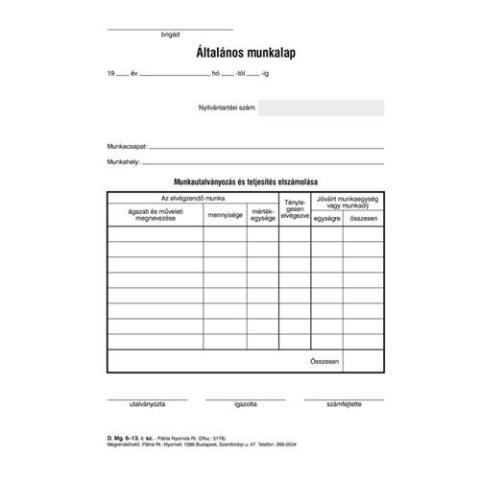 Általános munkalap A/4 fekvő - D.MG.6-13 - Nyomtatványok -