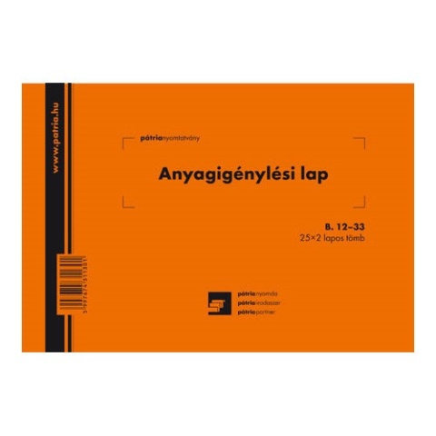 1 kép Pátria Nyomtatvány Anyagigénylési lap 8 tételes 25x2 lapos tömb A/5 fekvő