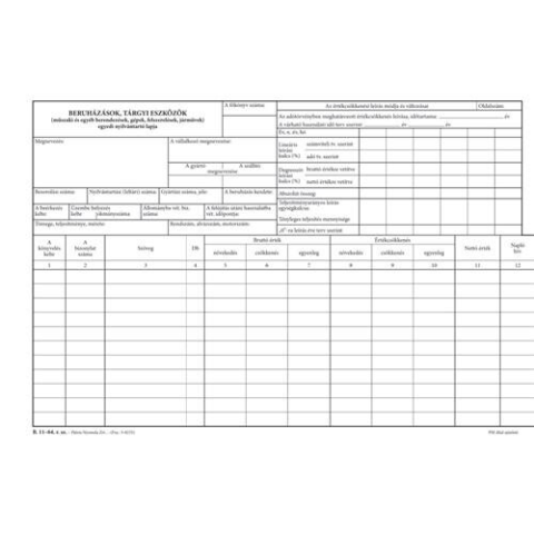 Pátria Nyomtatvány Beruházások tárgyi eszközök egyedi nyilvántartó lapja A/4 fekvő nyomtatvány 1 kép