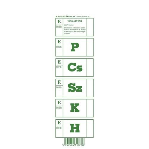 Ebédjegy 5 napos 100 lapos tömb 60x195 mm zöld - B.19-2/B/ZOLD - Nyomtatványok -