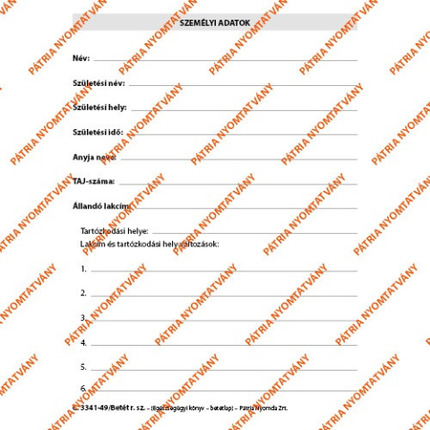 1 kép Pátria Nyomtatvány Egészségügyi könyv - Betétlap 115x160 mm
