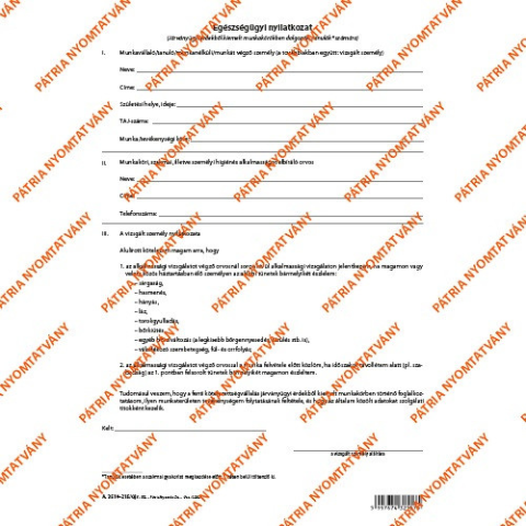 1 kép Pátria Nyomtatvány Egészségügyi nyilatkozat 3 lapos garnitúra A/4 álló