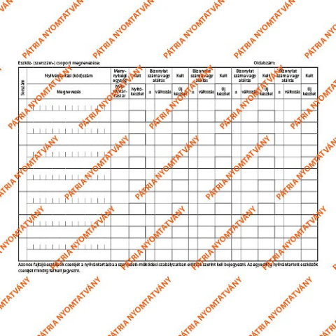 1 kép Pátria Nyomtatvány Eszközök munkahelyi nyilvántartása 123 tételes A/5 fekvő
