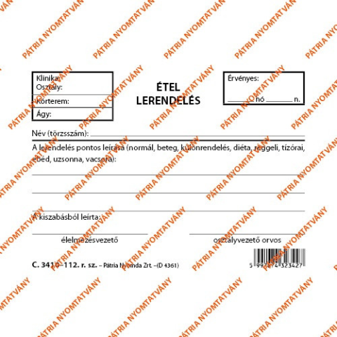 1 kép Pátria Nyomtatvány Étel lerendelés 100 lapos tömb 105x70 mm