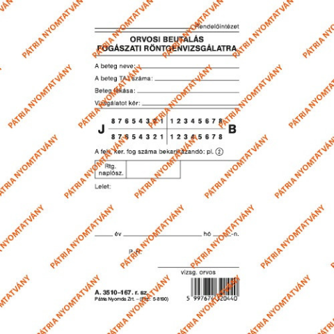 1 kép Pátria Nyomtatvány Fogászati beutaló szabadlap 85x148 mm