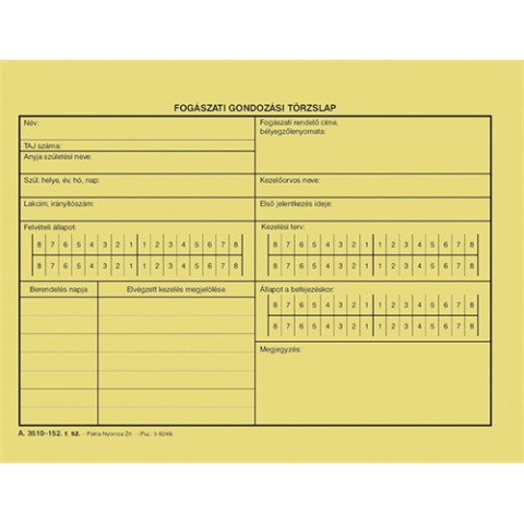 1 kép Pátria Nyomtatvány Fogászati gondozási törzslap tasak 203x154 mm