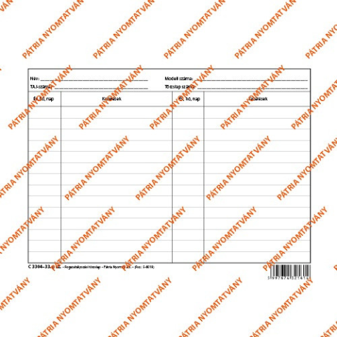 1 kép Pátria Nyomtatvány Fogszabályozási törzslap betét szabadlap A/5 fekvő