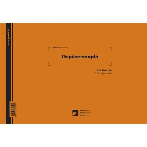 1 kép Pátria Nyomtatvány Gépüzemnapló 25x3 lapos tömb A/4 fekvő