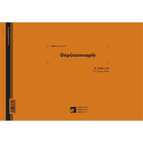 1 kép Pátria Nyomtatvány Gépüzemnapló 25x3 lapos tömb A/4 fekvő