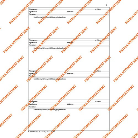 Pátria Nyomtatvány Gyógykezelési napló 100 lapos könyv A/4 álló nyomtatvány 1 kép