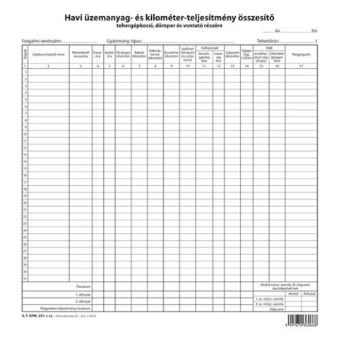 Havi összesítő (teher) szabadlap 295x295 mm - A.T.KPM.251 - Nyomtatványok -