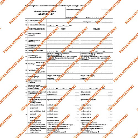 Pátria Nyomtatvány Házassági lap A/4 nyomtatvány árgrafikon