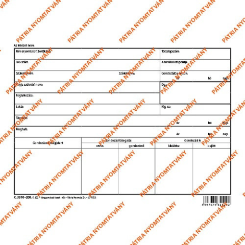 1 kép Pátria Nyomtatvány Ideggondozói boríték (női) tasak 220x160 mm