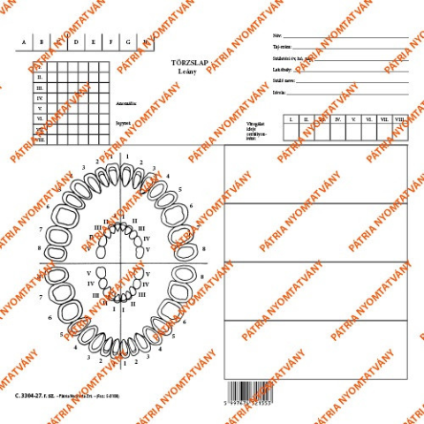 1 kép Pátria Nyomtatvány Iskolafogászati törzslap lány szabadlap 247x230 mm