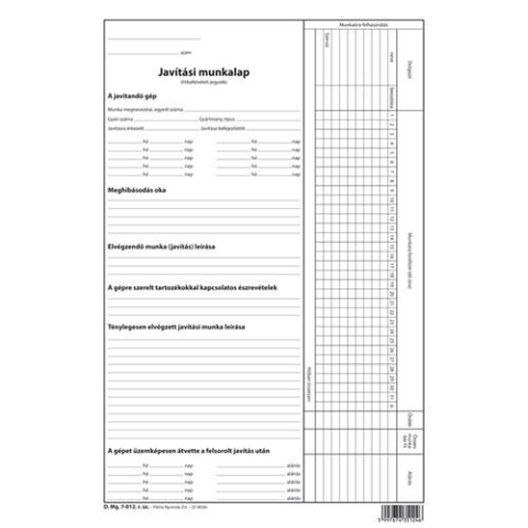 Pátria Nyomtatvány Javítási munkalap 100 lapos tömb A/4 álló nyomtatvány 1 kép