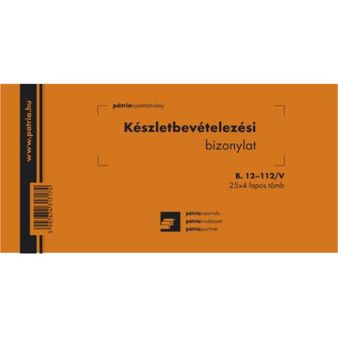 1 kép Pátria Nyomtatvány Készletbevételezési bizonylat 2 tételes 25x4 lapos tömb 203x102 mm