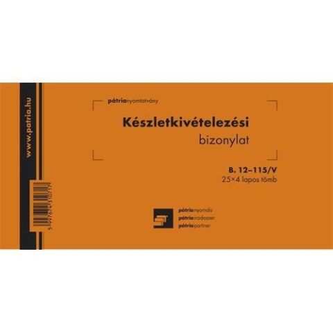 1 kép Pátria Nyomtatvány Készletkivételezési bizonylat 2 tételes 25x4 lapos tömb 203x102 mm
