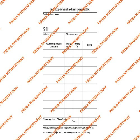 1 kép Pátria Nyomtatvány Készpénzeladási jegyzék 50x2 lapos tömb 70x140 mm
