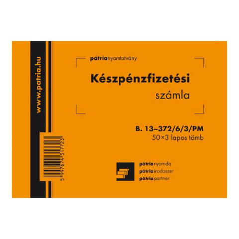 1 kép Pátria Nyomtatvány Készpénzfizetési számla 50x3 lapos tömb A/6 fekvő 2 Áfás