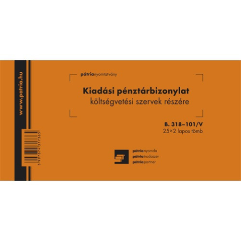 1 kép Pátria Nyomtatvány Kiadási pénztárbizonylat költségvetési 25x2 lapos tömb 203x102 mm