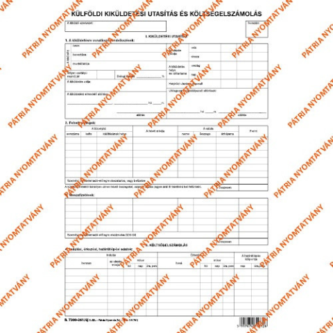 1 kép Pátria Nyomtatvány Külföldi kiküldetési utasítás és költségelszámolás szabadlap A/4 álló
