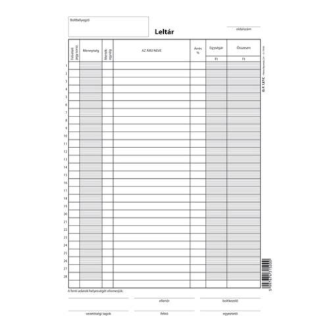 Leltárfelvételi ív szabadlap A/4 álló - D.F.127/C - Nyomtatványok -