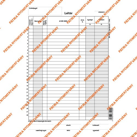 1 kép Pátria Nyomtatvány Leltárfelvételi ív szabadlap A/4 álló