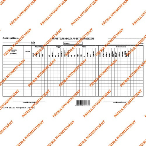 1 kép Pátria Nyomtatvány Napi étrend szabadlap 275x145 mm