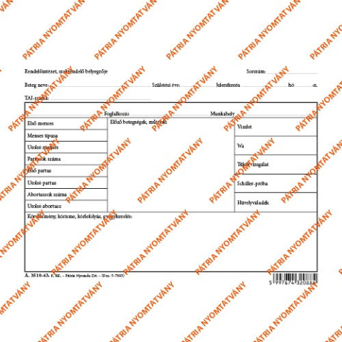 1 kép Pátria Nyomtatvány Nőgyógyászati karton szabadlap A/5 fekvő