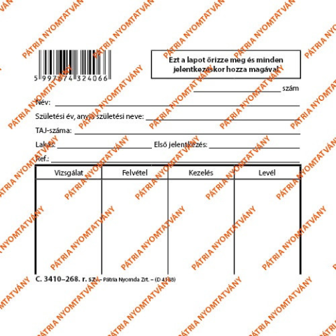 1 kép Pátria Nyomtatvány Onkológiai jelentés szabadlap 120x100 mm