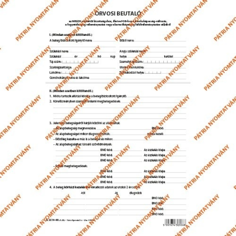 1 kép Pátria Nyomtatvány Orvosi beutaló az NRSZH szakértői bizottságához A/4 négyoldalas