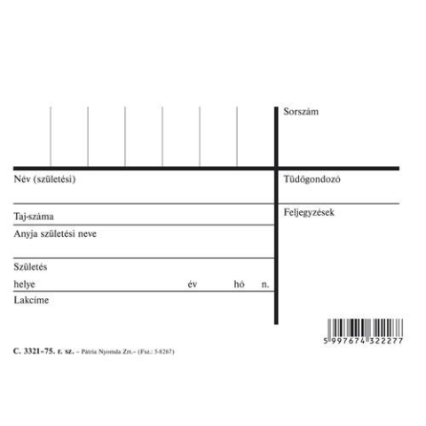 1 kép Pátria Nyomtatvány Röntgen tüdőkataszter tasak 160x120 mm