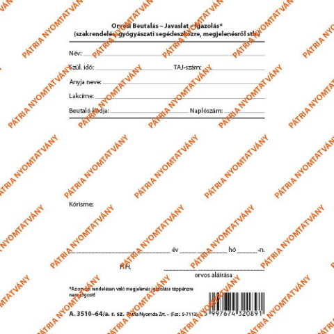 1 kép Pátria Nyomtatvány Szakbeutaló szabadlap A/6 álló