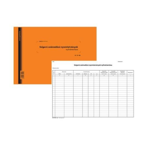 Szigorú számadású nyomtatványok nyilvántartása 25 lapos tömb A/4 fekvő - B.15-46 - Nyomtatványok -