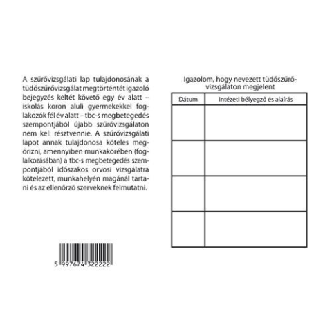 1 kép Pátria Nyomtatvány Szűrővizsgálati lap A/6 fekvő