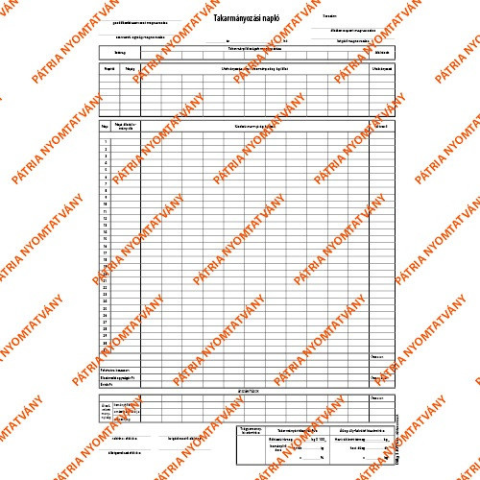 1 kép Pátria Nyomtatvány Takarmányozási napló 50x2 lapos tömb 295x410 mm
