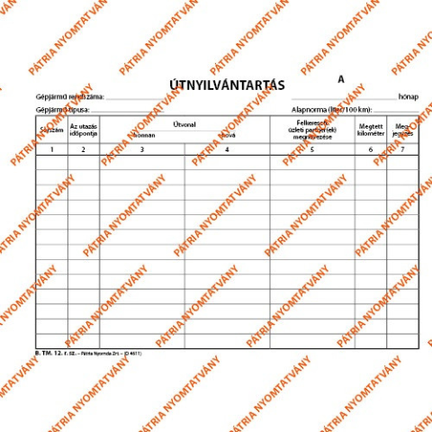 1 kép Pátria Nyomtatvány Útnyilvántartó 50 lapos tömb A/5 fekvő
