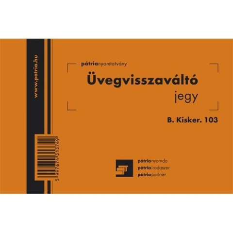1 kép Pátria Nyomtatvány Üvegvisszaváltó jegy 100 lapos tömb 105x70 mm