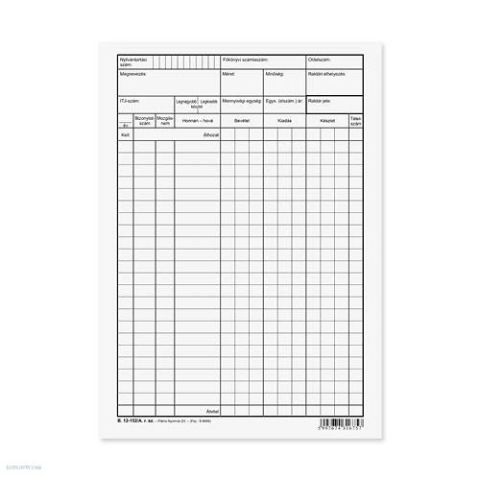 PÁTRIA Raktári nyilv. lap B.12-152 Pátria nyomtatvány 1 kép