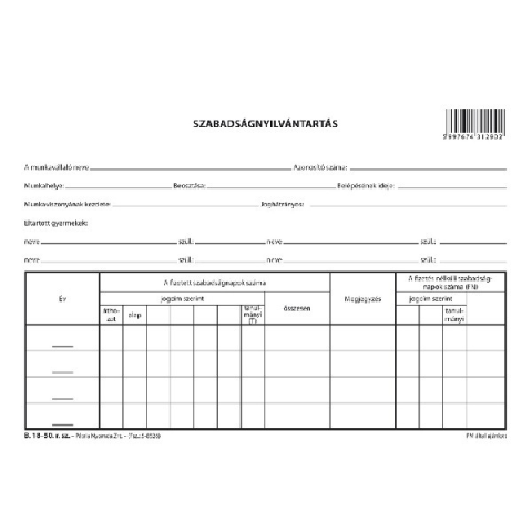 Szabadságnyilvántartás A/5 fekvő Szabadságnyilvántartás A/5 fekvő B.18-50