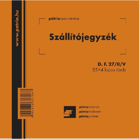 Szállítójegyzék 25x4 lapos tömb 140x140 mm Szállítójegyzék 25x4 lapos tömb 140x140 mm D.F.27/II/V
