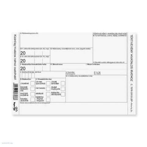 PÁTRIA Tértivevény hivatalos irathoz íves új gépi C.7976-1/GP 2013 nyomtatvány 1 kép
