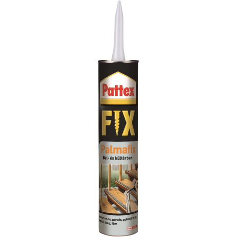 A Pattex Palmafix kartusos építési ragasztó egy oldószeres, kontakt módon ragasztó (az oldószer elpárolgását biztosítani kell), rendkívül nagy kezdeti tapadással bíró erősragasztó, amely tömör felületek egymáshoz ragasztására is alkalmas. Alkalmazható fa, fém, műanyag, beton, kő, kerámia, gipszkarton, stb. ragasztására. Bézs színű. Fagyban is alkalmazható (-7°C felett), a polisztirol lapokat nem károsítja. Kiadósság: kb. 6-7 m (5 mm átmérő esetén). Az
