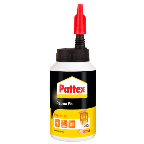 A Pattex Palma Fa Expressz gyorsan megkör,5 perc alatt megmutatja erejét, nem tartalmaz oldószert, csaknem valamennyi fafajta ragasztására használható. Vinilacetát kötőanyagú, nagy kötési szilárdságú ragasztóanyag. Midenfajta faáru és műanyag dekorációs lap ragasztására szolgál. Használható barkácsolásnál, szerelésnél (köldökcsap, csapos kötések, szélesítő és hosszabbító toldások), fugaragasztásra, tömör fa ragasztására és felületragasztásra (fu