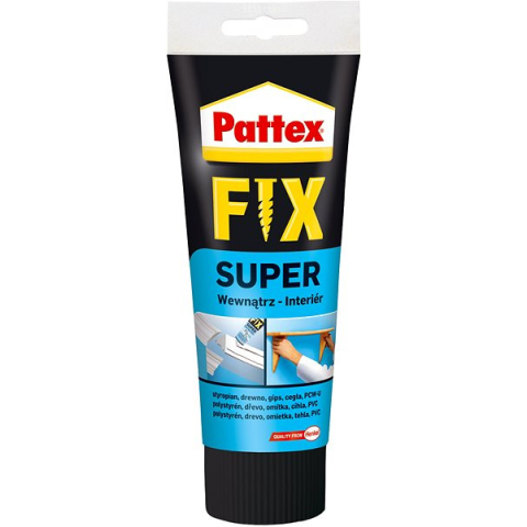 Ragasztó - építési-szerelési, merev kötést létesít, alkalmas építőanyag rögzítésére a legkülönfélébb felületekhez A PATTEX Fix Super Interiér ragasztó ideális segítőtárs a beltéri szerelési munkákhoz. Megbízhatóan ragasztja a könnyű és nedvszívó anyagokat, így használhatod dekorációs lapokhoz, polisztirol elemekh