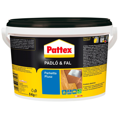 A Pattex Parketta Plusz egy diszperziós parkettaragasztó kisméretű, nyers, lakkozatlan, csaphornyos parketta ragasztására - aljzatkiegyenlített felületekre (Ceresit DH Maxi vagy Ceresit DD+, a vastagság függvényében). Padlófűtés esetén is alkalmazható. Nedvességre érzékeny fafajtákhoz is (bükk, juhar, kőris, tölgy, akác, cser)!