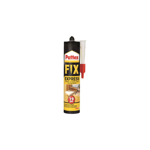 A Pattex Express Fix egy oldószeres ragasztó, mely azonnal rögzít (Instant Tack), nem kell várni az oldószer elpárolgására. Sárgás színű. Kül- és beltérben egyaránt használható, tömör felületekhez is alkalmas. Alkalmazható fa, fém, műanyag, beton, kő, kerámia, gipszkarton, plexi, stb. ragasztására. Polisztirolhoz nem használható. Fagyban is alkalmazható (-10°C felett)! Kiadósság: kb. 6-7 m (5 mm átmérő esetén). Kötésidő: végszilárdságát kb. 24-48 ór