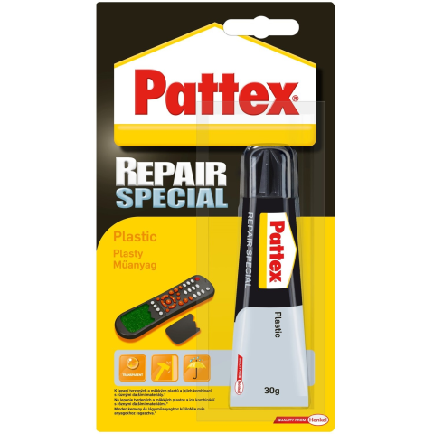 A Pattex Repair Special Műanyag egy speciális ragasztó kisebb műanyag tárgyak ragasztásához és javításához. Oldószeres, rugalmas, víz- és mosásálló, átlátszóra száradó ragasztó. Ideális minden kemény és lágy műanyaghoz különféle más anyagokhoz (fa, papír, fém, üveg, kerámia) ragasztva. Kontakt módon ragaszt (az oldószer elpárolgását biztosítani kell). A végleges szilárdságot 24 óra után éri el.
