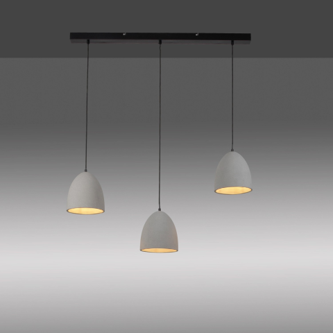Az Eton három izzós függőlámpa három szürke színű, kerek, szürke betonból készült lámpatestből áll. A függőlámpa három E27-es, max. 40 W-os izzóval felszerelt. A függőlámpa fénye finoman sugárzik lefelé, ezért ideális az étkezőasztal fölé történő elhelyezésre. A mennyezeti lámpa modern beton megjelenésének köszönhetően tökéletesen illeszkedik az ipari formatervezésű lakberendezési stílusokhoz. A lámpaernyő átmérője 21 cm, magassága pedig 21,