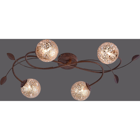 A Greta mennyezeti lámpa melegen világítja meg lakótereit. A barna, festett acél és az aranyszínű, fényáteresztő mintával ellátott fénygömbök kombinációja különleges pluszt ad a lámpának. A lámpa izzó nélkül kerül kiszállításra. A lámpát négy, egyenként legfeljebb 40 W-os G9 izzóval szerelheti fel. Kombinálja a mennyezeti lámpát tetszés szerinti izzóval. A mennyezeti lámpa nemcsak gyönyörű fényjátékot teremt az arany fénygömböknek köszönhetően